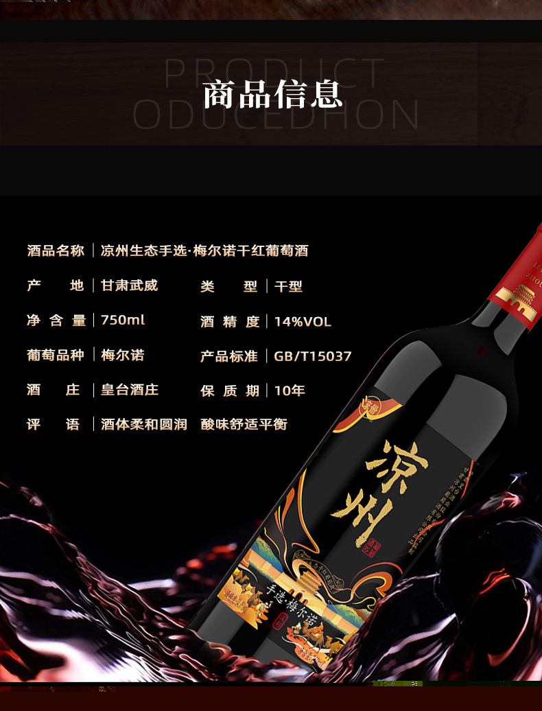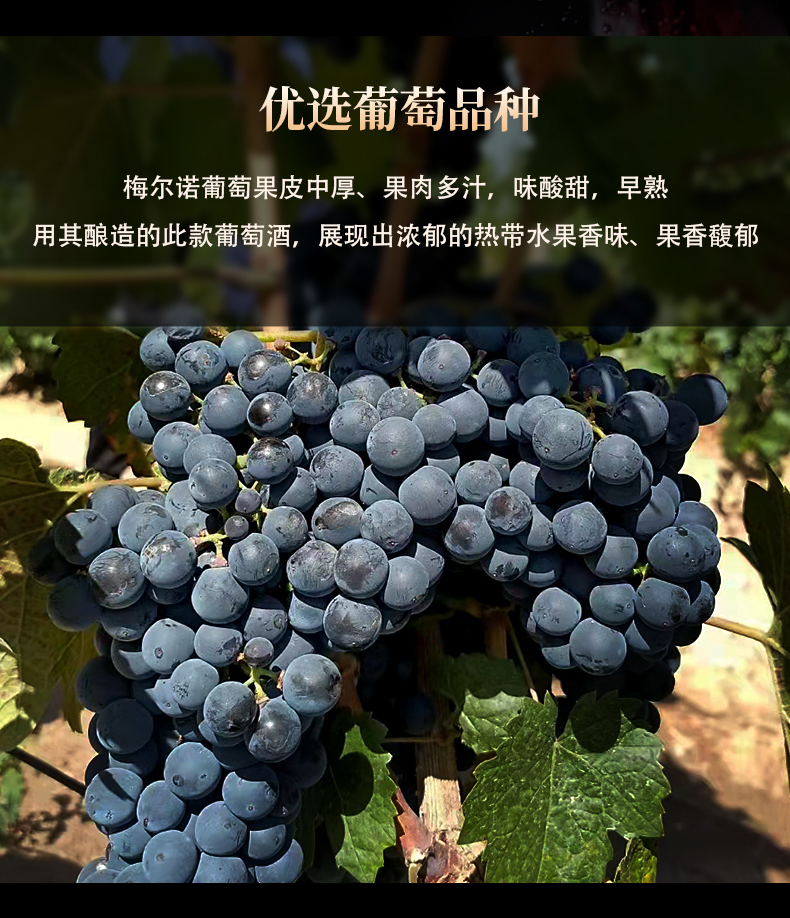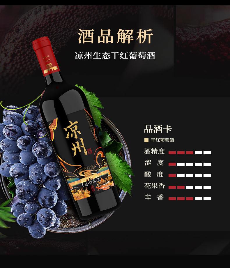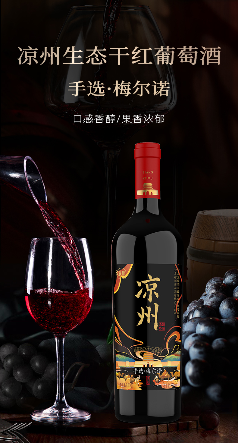 酒品名稱:涼州生態(tài)手選·梅爾諾干紅葡萄酒