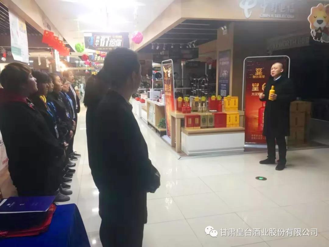 皇臺酒業(yè)銷售總監(jiān)白利群在萬達蘇寧店為員工講解皇臺酒雙“十一”銷售優(yōu)惠政策