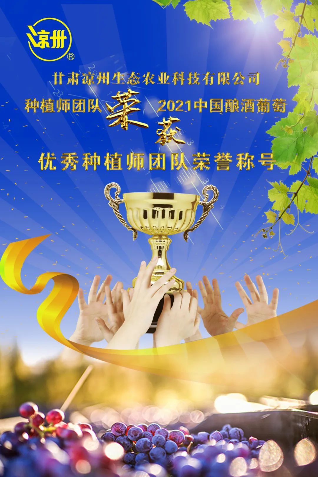 熱烈祝賀甘肅涼州生態(tài)農(nóng)業(yè)科技有限公司種植師團(tuán)隊(duì)(全健偉等)被評(píng)選為2021中國(guó)釀酒葡萄優(yōu)秀種植師團(tuán)隊(duì)!