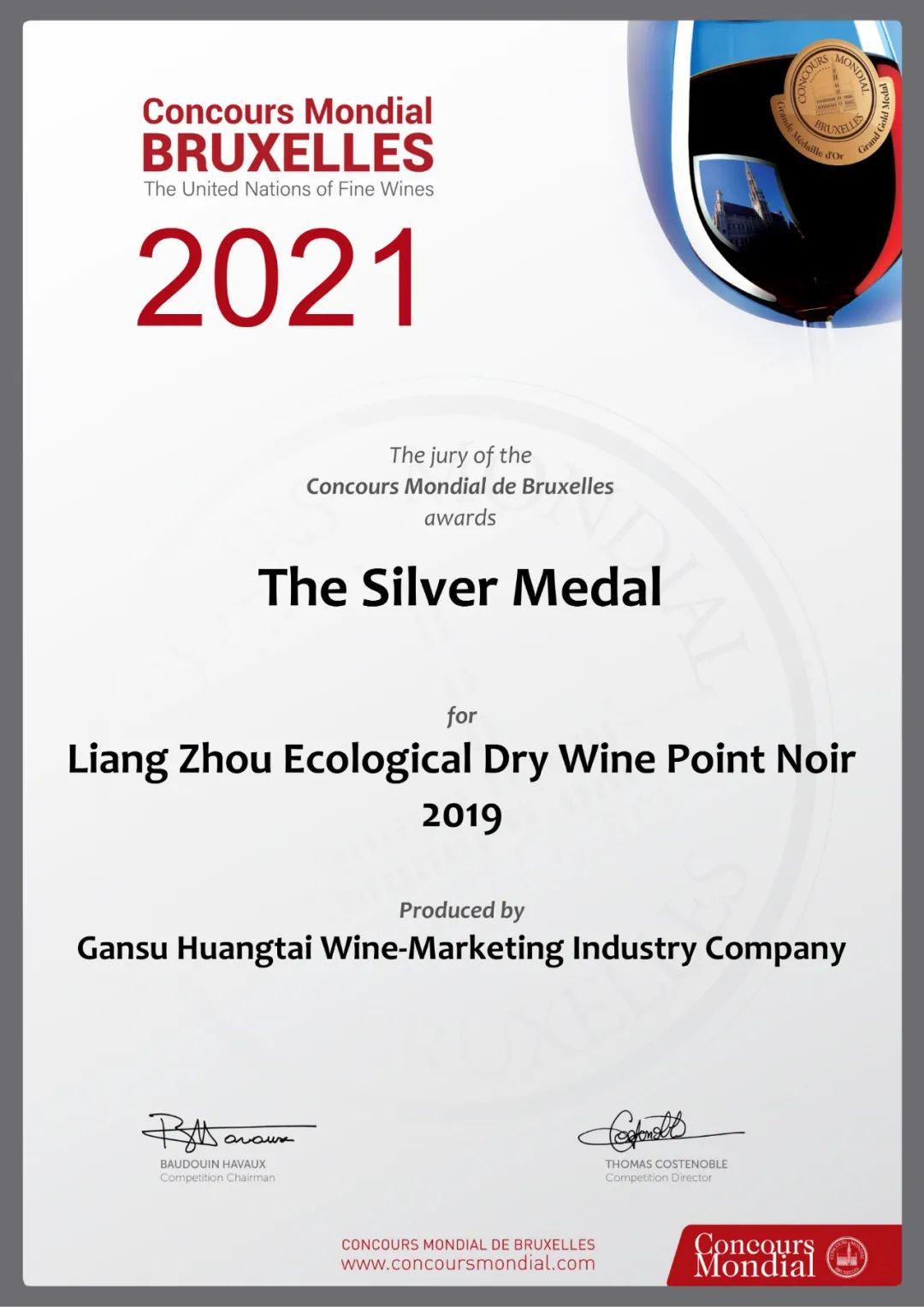 7月初,甘肅涼州葡萄酒有限公司生產(chǎn)的“涼州生態(tài)干紅葡萄酒·手選黑比諾2019”,在第28屆比利時(shí)布魯塞爾國際葡萄酒大獎(jiǎng)賽上榮獲銀獎(jiǎng)。