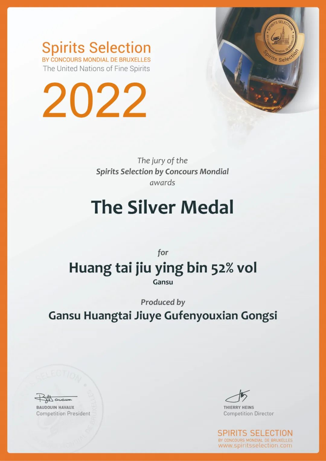 比利時(shí)布魯塞爾國(guó)際酒類大獎(jiǎng)賽創(chuàng)辦于1994年,是全球三大酒類賽事之一,大賽的獎(jiǎng)項(xiàng)含金量之高,被譽(yù)為酒界“奧斯卡”,是國(guó)際烈酒發(fā)展的風(fēng)向標(biāo)。