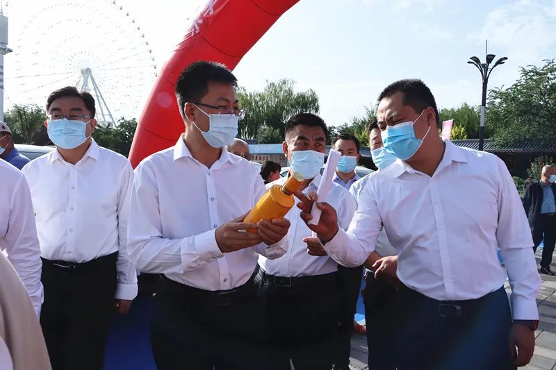 與會領(lǐng)導(dǎo)在皇臺酒業(yè)布展展臺前