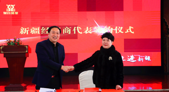 皇臺(tái)酒業(yè)總經(jīng)理代繼陳和新疆鄯善經(jīng)銷(xiāo)商簽約