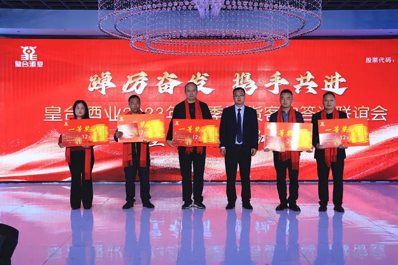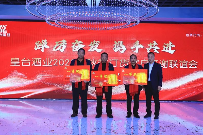金秋十月盛世華夏,碩果累累美酒飄香。10月13日上午,皇臺(tái)酒業(yè)2023秋季訂貨客戶答謝會(huì)隆重召開。皇臺(tái)酒業(yè)董事、總經(jīng)理代繼陳,副總經(jīng)理、總工程師陳兵,副總經(jīng)理?xiàng)罾?,副總?jīng)理、營銷總監(jiān)張金道,財(cái)務(wù)總監(jiān)劉會(huì)平等公司領(lǐng)導(dǎo),以及商界嘉賓、三縣一區(qū)經(jīng)銷商朋友等共計(jì)1000多人,以酒為媒,共話發(fā)展。