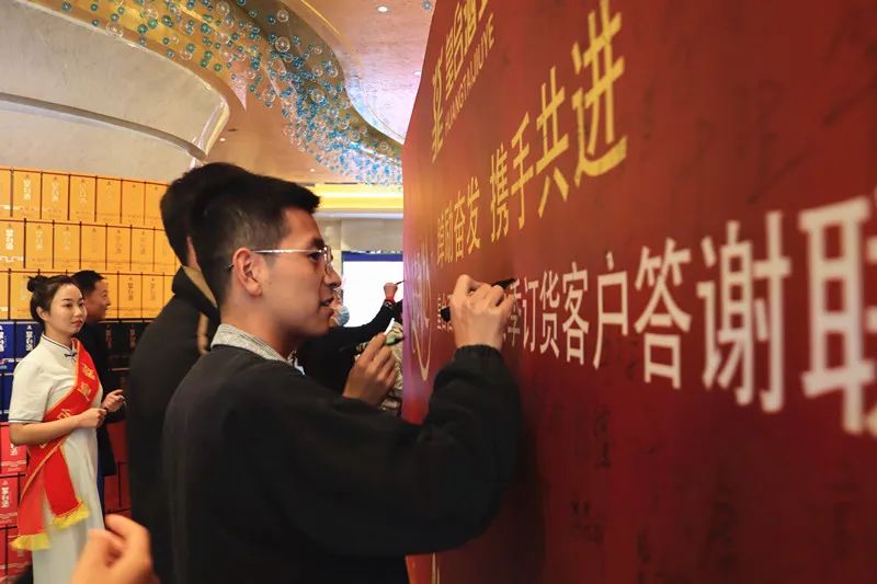 公司副總經(jīng)理、營銷總監(jiān)張金道致祝酒詞:我們將竭盡全力為大家提供最優(yōu)質(zhì)的服務(wù),和最廣闊的發(fā)展平臺(tái)。讓我們攜手共進(jìn),再接再厲,讓我們舉起醇香的皇臺(tái)美酒,為廠商合作雙贏干杯!為皇臺(tái)品牌騰飛干杯!為百年皇臺(tái)夢想干杯!