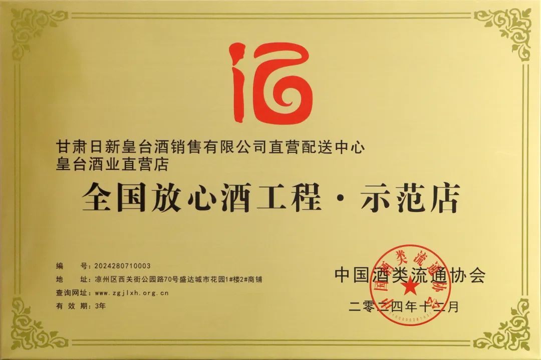 12月中旬,2024年中國酒類流通協(xié)會公布了全國放心酒工程示范企業(yè)(店)名單,甘肅皇臺酒業(yè)股份有限公司憑借優(yōu)異的品質(zhì)和信譽(yù),成功榮獲了全國放心酒工程·示范企業(yè)殊榮。與此同時,甘肅日新皇臺酒銷售有限公司直營配送中心也因其優(yōu)質(zhì)的服務(wù)和管理,榮獲了全國放心酒工程·示范店稱號。