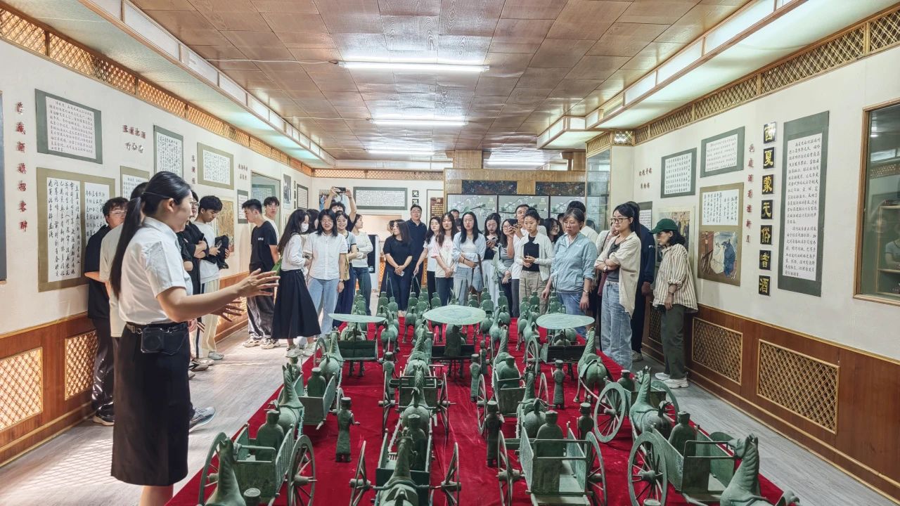 在酒文化館,師生們穿越時空長廊,沉浸式溯源涼州酒的千年脈絡(luò)。從漢唐盛世絲綢之路的駝鈴聲中,葡萄酒香隨商旅西來,見證武威作為“河西都會”的商貿(mào)繁榮;到明清時期酒坊林立,涼州美酒遠銷中原大地,折射出區(qū)域經(jīng)濟的興衰歷程和蓬勃生機。