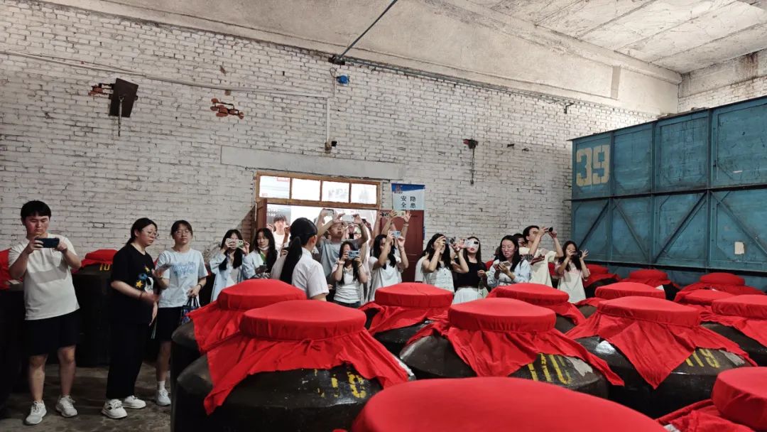 步入半成品白酒庫,陶壇靜默佇立,空氣中彌漫著歲月沉淀的酒香。講解員生動講解了陶壇儲酒對酒體老熟的催化作用,讓學(xué)子們直觀感受到“時間成本”與“品質(zhì)控制”在實體經(jīng)濟中的核心價值。