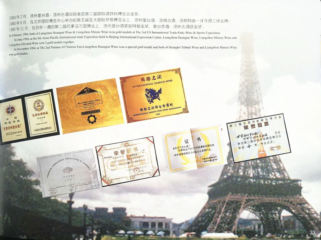 皇臺酒業(yè)先后榮獲諸多國內(nèi)外獎項
