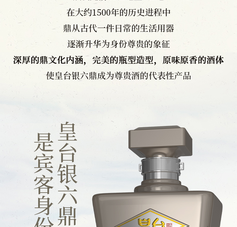品名:皇臺酒銀六鼎52度濃香型純糧食陳釀白酒送禮宴請禮盒裝