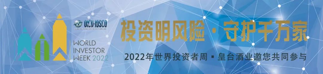 2022年10月8日-14日為“2022年世界投資者周”,本次活動主題為“投資明風(fēng)險,守護(hù)千萬家”。為貫徹落實監(jiān)管部門投資者保護(hù)工作的部署要求,加強(qiáng)投資者教育保護(hù)的國際交流合作,積極響應(yīng)“2022年世界投資者周”活動號召,皇臺酒業(yè)在監(jiān)管部門的指導(dǎo)下,將以“投資明風(fēng)險,守護(hù)千萬家”為主題,開展投資者教育和保護(hù)宣傳,面向投資者做好證券基金期貨知識宣傳普及,引導(dǎo)投資者學(xué)習(xí)金融知識,樹立正確投資理念!